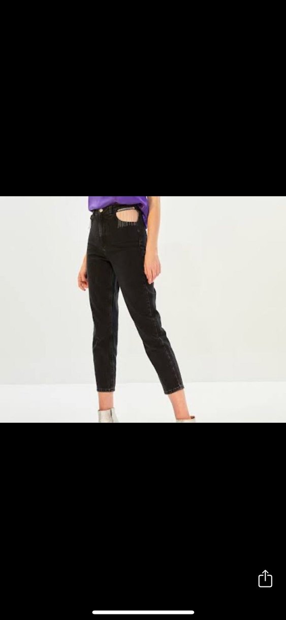 Kadınlar için regular fit, kısa boy ve mini tarzda siyah taş detaylı jean bir iki kez giyildi. Defosuz. 26-36 beden