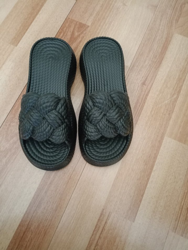 siyah platform hafıf topuklu kadın terlik sade günlük kullanım için uygundur. plastik terlik