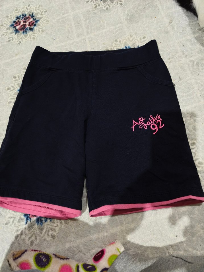 Koyu pembe renkli, baskılı ve velcro kapanışlı, yumuşak ve sıcak kumaştan yapılmış kadın için rahat sokak tarzı şort.