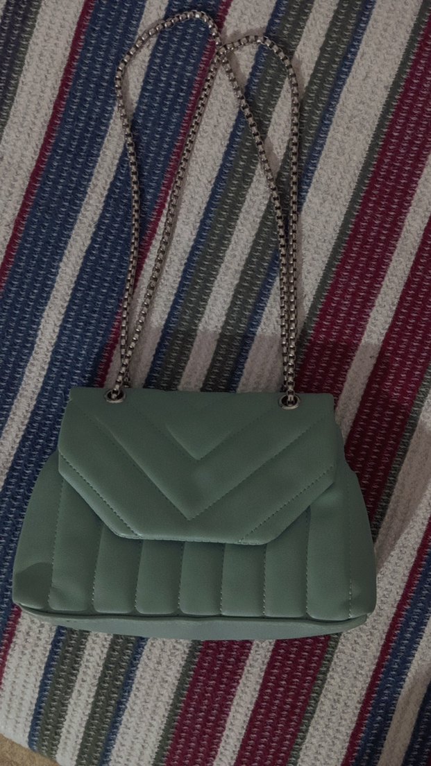 Zincir detaylı, soft yeşil renkli kadın çantası, sentetik kumaştan üretilmiştir. Trendy ve günlük sokak stili için uygundur.