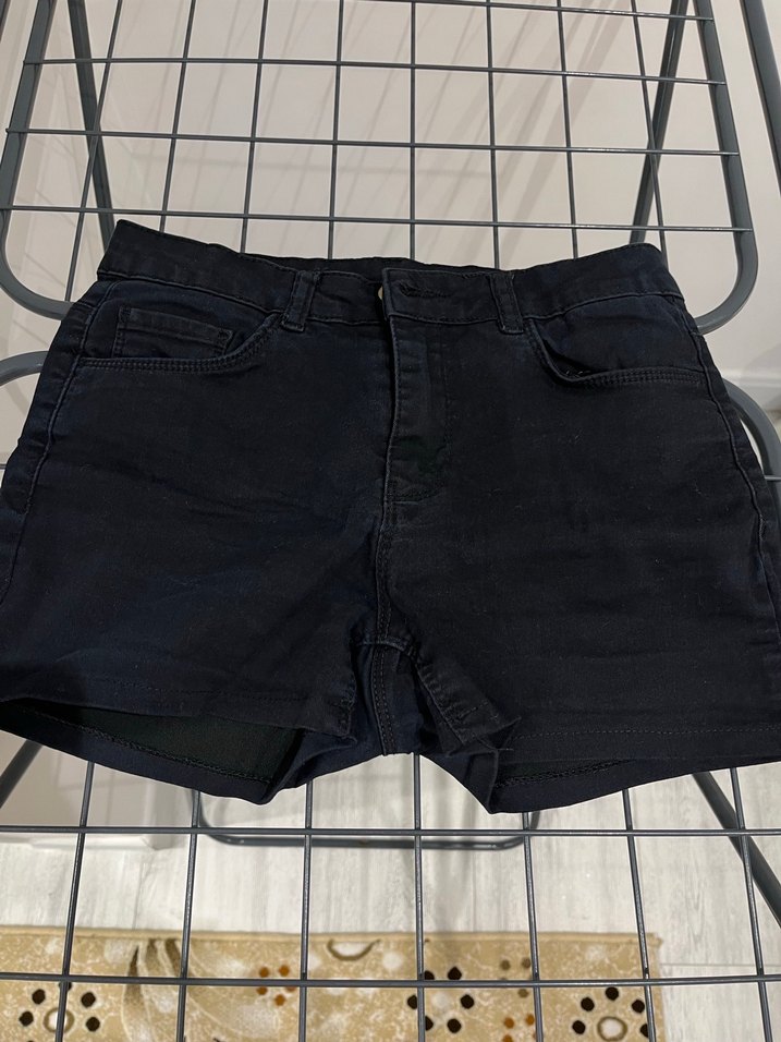 Bu siyah, midi uzunlukta, düz ve desen içermeyen fitted denim şortlar günlük sokak modası için uygundur. Minimalist tarzıyla zahmetsiz şıklık sunar.