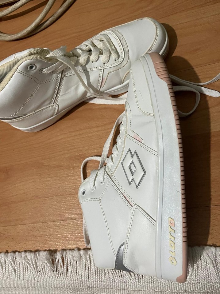 Beyaz bağcıklı kadın spor ayakkabıları, dolgu topuklu ve kauçuk tabanlıdır. Spor ve günlük sokak stiline uygun, sade ve hafif tasarıma sahiptir.