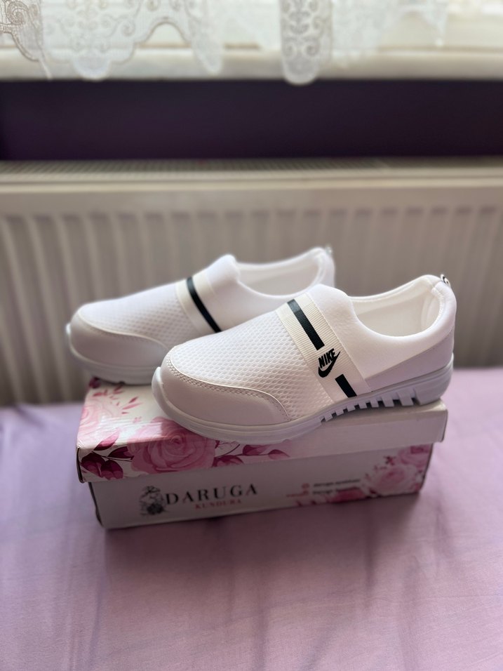 Spor bağcıksız ayakkabı sıfır kutuludur. Ayağım taraklı o yüzden yanlardan Kalıbı biraz dar geldi 36-37 numara için uygun olacaktır. Nike logoludur. Replika üründür.