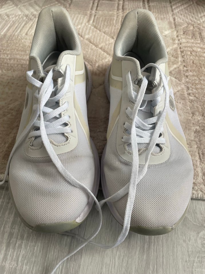 Beyaz bağcıklı kadın spor ayakkabısı, sade tasarımlı, spor ve sokak stili