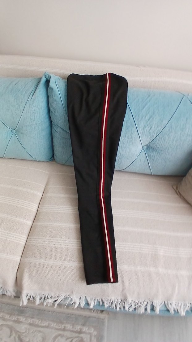 Kadın spor tayt kenarı çizgili boy.91.cm.basen.40.cm. beden 36.ama esnek 38.de olur yırtık sökük yok sadece hafif tüylenme var belli olmuyor kullanıma engel değil.