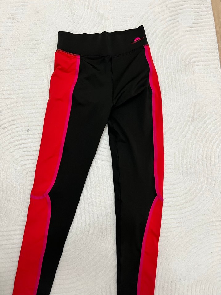 Kırmızı ve siyah renklerde, esnek sentetik kumaştan üretilmiş, dar kesim kadın spor tayt. Spor ve sokak stiline uygundur. ♀️ S beden sıfır ürün bir sorunu yoktur