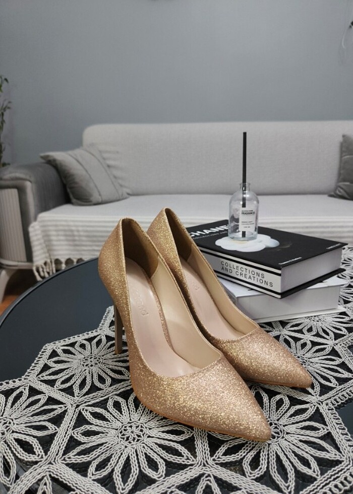 ✅ Kadın Stiletto bakır renkli simli topuklu ✅ Ürün Sıfır Ambalajında ✅ 1. Kalite İthal Maldır. ✅ Bej Renkli bakır renkli ayakkabı simli ✅ Dış materyal: 0 Antibakteriyel Pu Deri & Lüx Süet & Sim ✅ iç Materyal: 0 Antibakteriyel Pu Deri ✅ Taban: Jurdan Taban; ✅ Topuk Ölçüsü: 10,5 Cm ;;