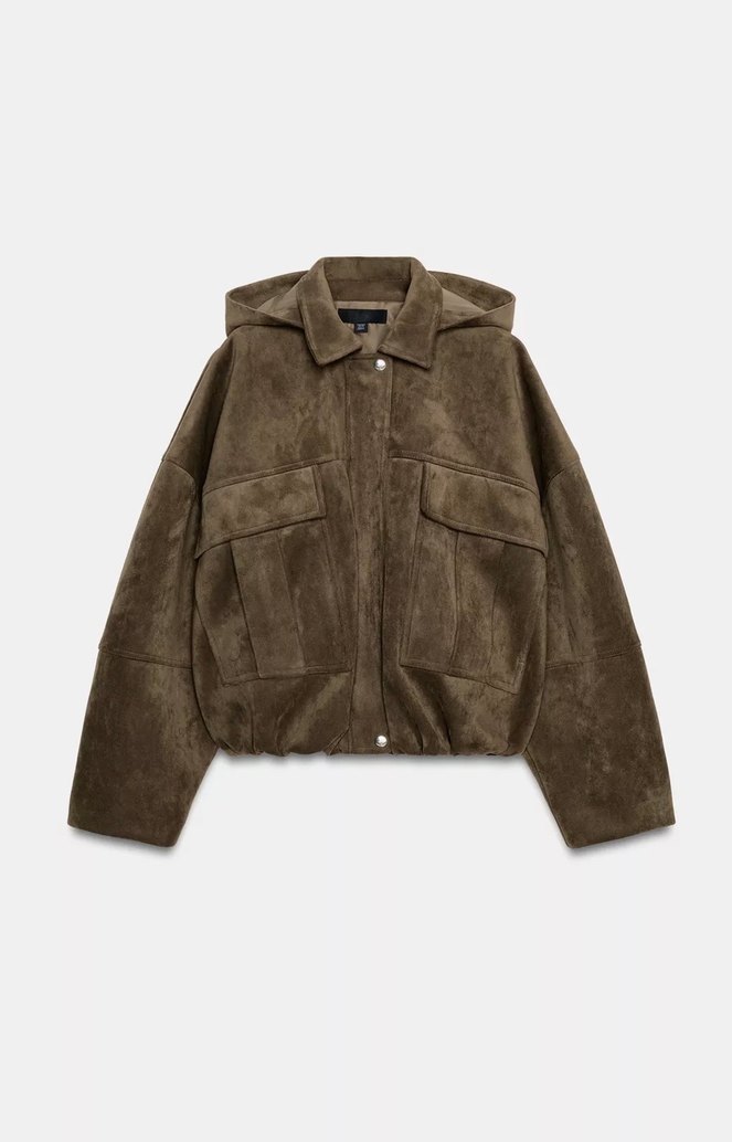 Uzun kollu, yakalı ve kemerli rahat kesim kadın süet ceket, günlük kullanıma uygun ve trend görünüm sağlar.
