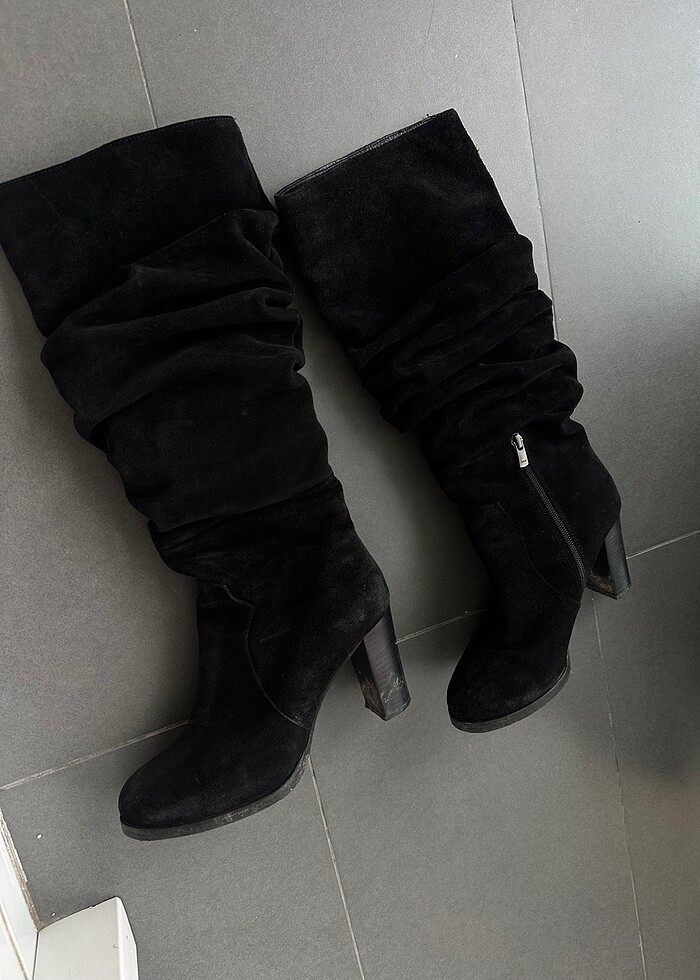 Süet topuklu siyah sorunsuz tam kalıp 38 numara çizme #çizme #kadın #topukluçizme #ninewest #hotiç