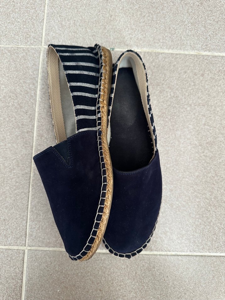 Ürün birkaç kez kullanılmıştır. 40 numaradır. Sanki ayağınızda hiç yokmuş gibi bir rahatlığı vardır.Lacivert renk, süet,kadın,espadril, velcro detaylı,önü düz,yan tarafları hasır,çizgili arka kısmı ve doğal tabanı ile günlük stilinize uygundur.