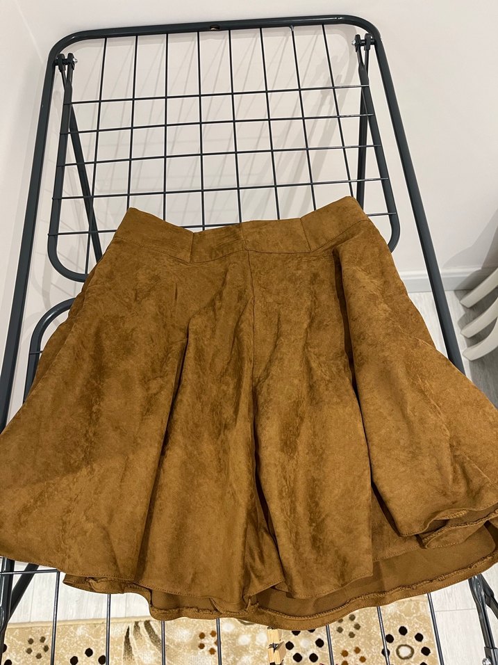 Kahverengi süet pilili midi etek, bol kesim ve bohem tarzıyla Paris havası taşıyor. Günlük kullanıma uygun koyu ve desensiz tasarıma sahiptir.