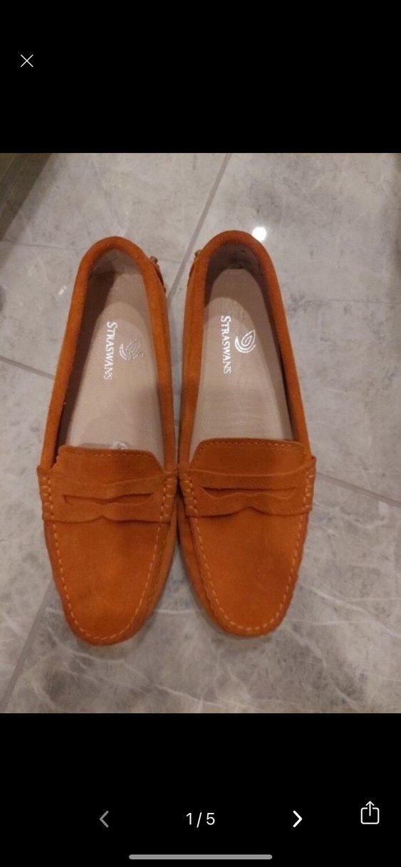 Turuncu renkli, süet tokalı loaferlar. Trendy ve rahat sokak Marka: STRASWANS.