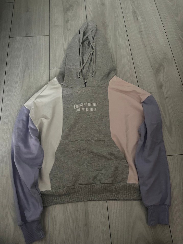 S beden kapişonlu kadın sweatshirt gri,mor,beyaz ve pembe renkli az kullanılmış çok iyi durumda hiçbir kusuru yoktur.