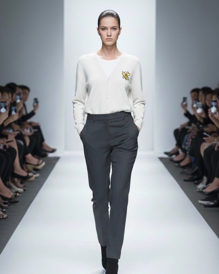 Gri renkte, baskılı pamuk kumaştan, normal boy ve regular kesim kadın cigarette pantolon, ofis için rahat ve şık görünüme uygundur.