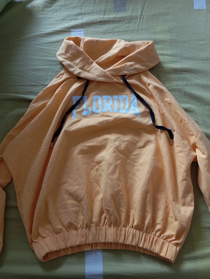 , bol kesim kadın sweatshirt. Uzun kollu, dökümlü tasarım ve 'FLORIDA' baskılı. Yumuşak keten kumaştan, günlük kullanıma uygun.