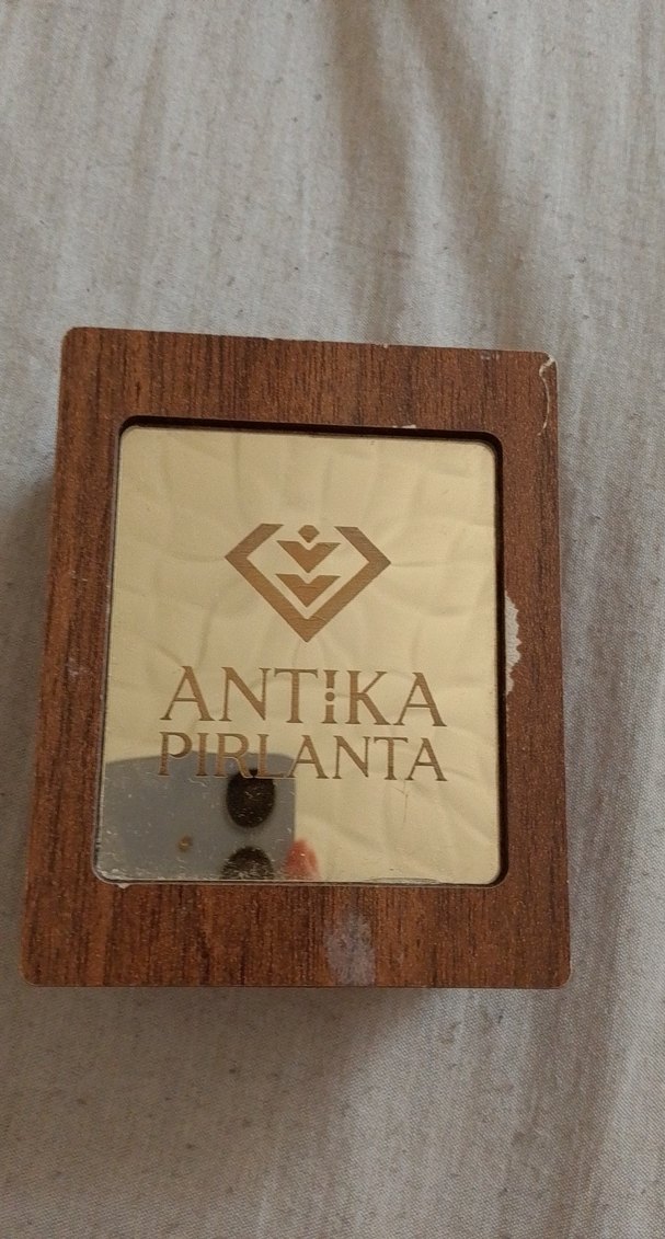 Parlak altın renkli, vintage bohem tarzda kadın takısı "PIRLANTA, ANTIKA" yazılıdır. ✨