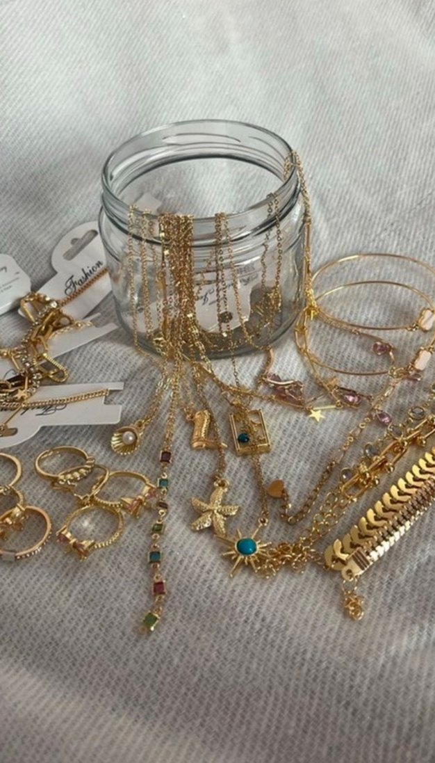 Bu kavanozumuzda 8 adet takı bulunmaktadır hepsi yeni ve etiketlidir. gold silver veya karışık olarak kişiye özel hazırlanmaktadır. hepsi yeni trend ürünlerdir. kaliteli takılar uygun fiyata keyifli alışverişler diliyorum✨️