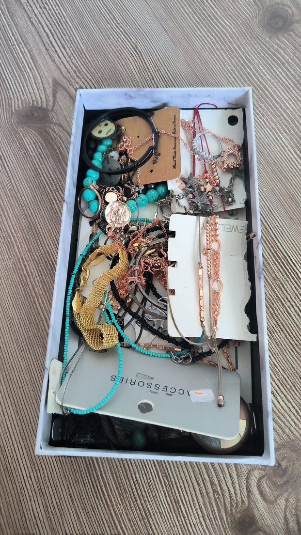 süpriz takı kutusu içinde her çeşit takılar mevcut kolye küpe bileklik saat yüzük gibi bir çok ürün dolu sürpriz kutusu bir çok ürün kullanılmadı. kendinize bi güzellik yapmanın tam zamanı :)