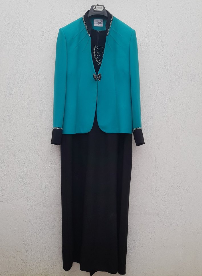 Kalın askılı , yırtmaçlı , bolcuk detaylı ceketi ayrı Özel günlerinizde kullanabileceğiniz İkili takım elbise