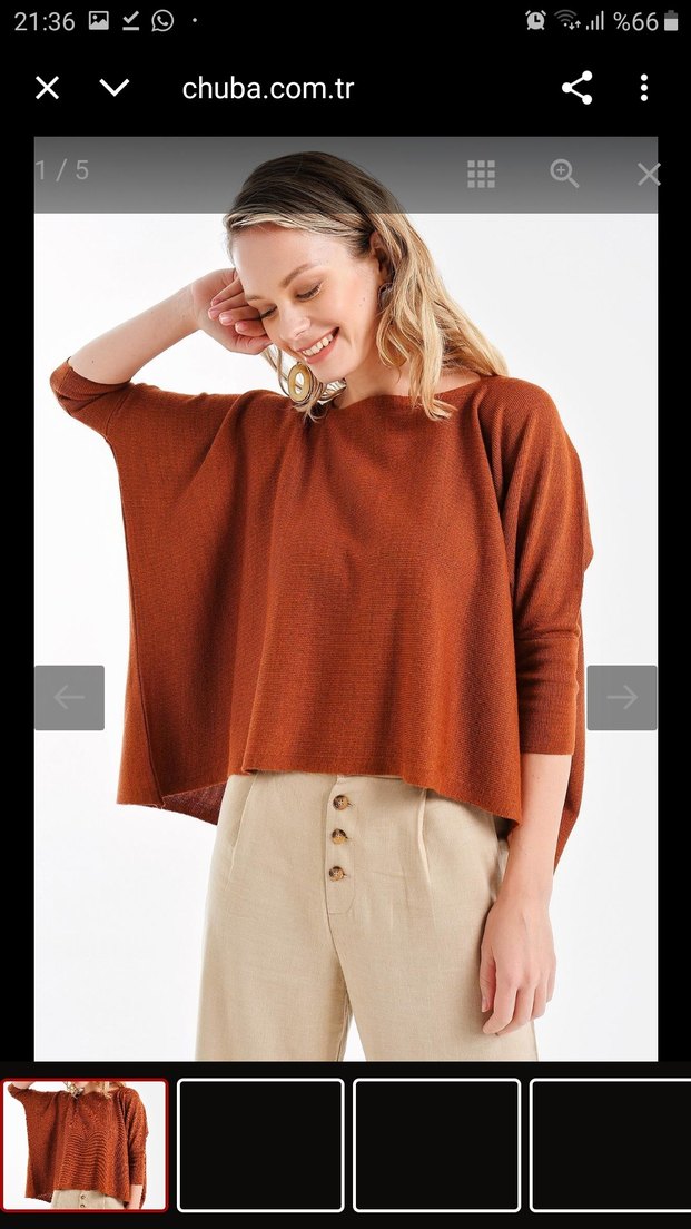 Tarçın renginde triko panço diye geçiyor. Defosu yoktur. Sade tasarımıyla günlük kullanıma uygun, zahmetsiz şıklık sunar. Chuba markaya aittir. Güzel kombinlenebilecek bir parçadır.
