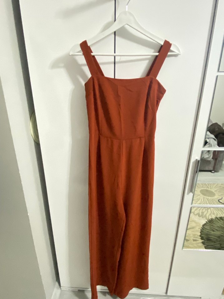 Kadın tarçın renk maxi tulum, askılı ve straplez yakaya sahip, rahat kesimli. Günlük kullanım için uygun, minimalist sokak stiliyle uyumlu, desensiz tasarım.
