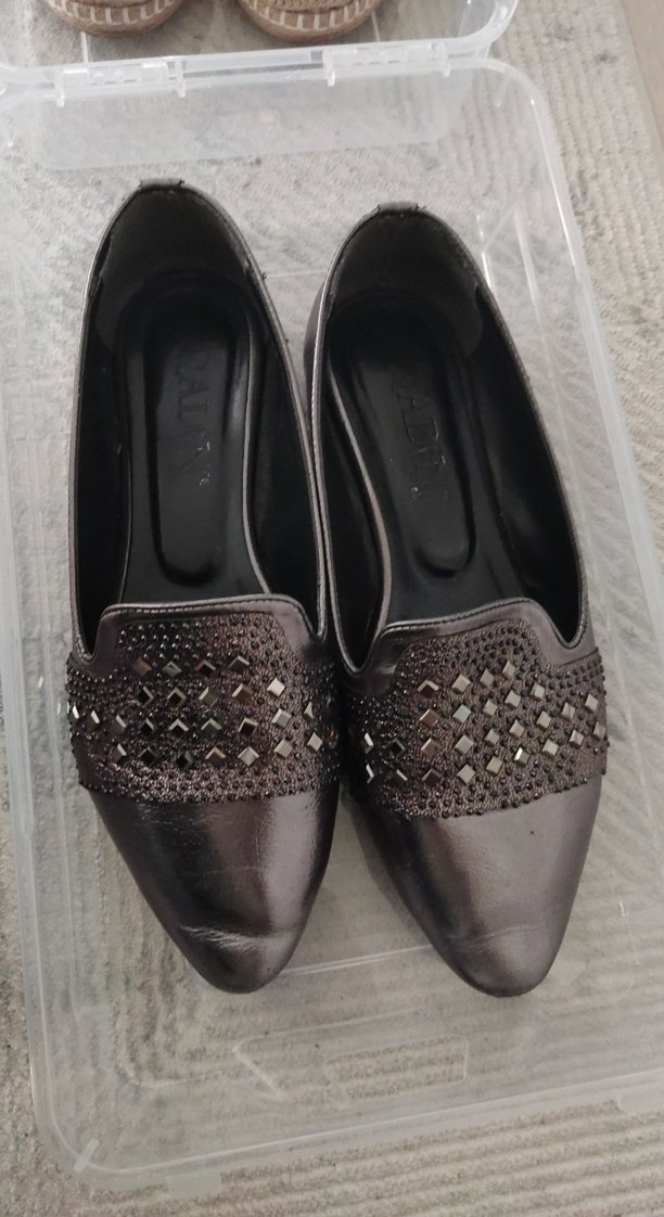 gri füme renk taşlı parıltılı babet ayakkabı, 40 numara