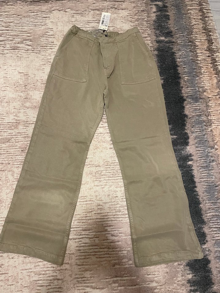 Yeni etiketli iade yoktur Kadınlar için loose fit kesim, midi boy, keten kumaştan yapılmış haki renk pantolon. Günlük rahat kullanıma uygun, zahmetsiz şıklık sunar.