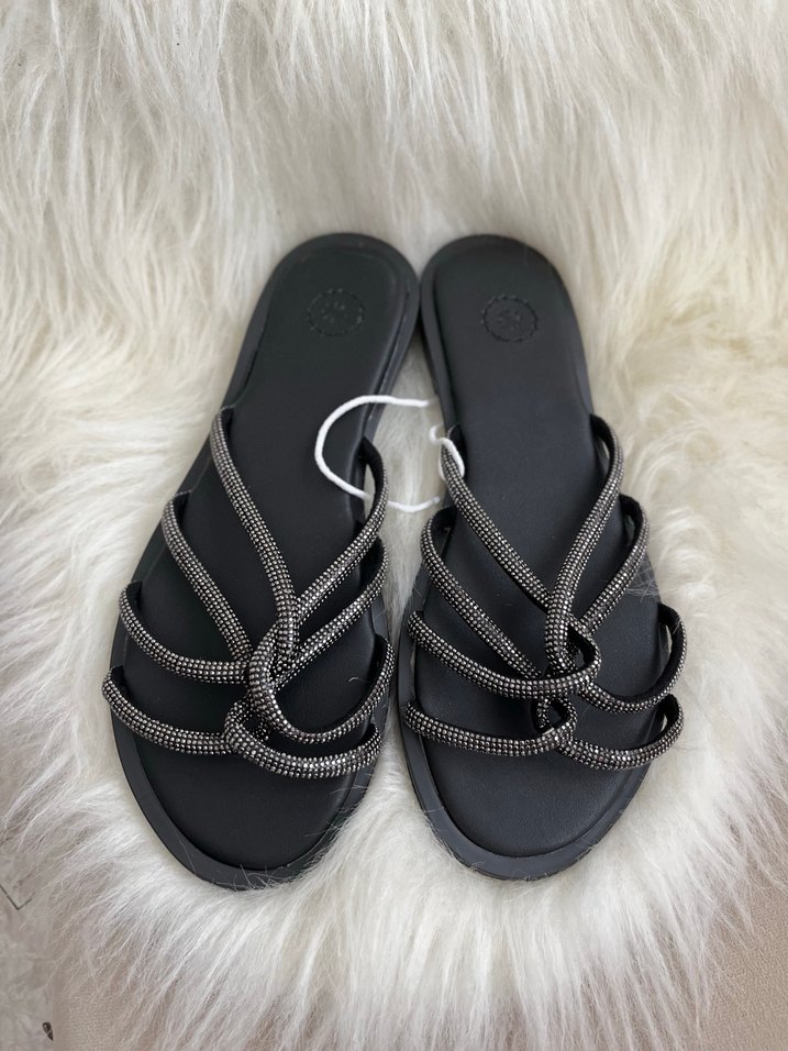 Gri renkli kadın terlik, kayışlarla sokak stiline uygun yılan deseniyle tasarlanmıştır.