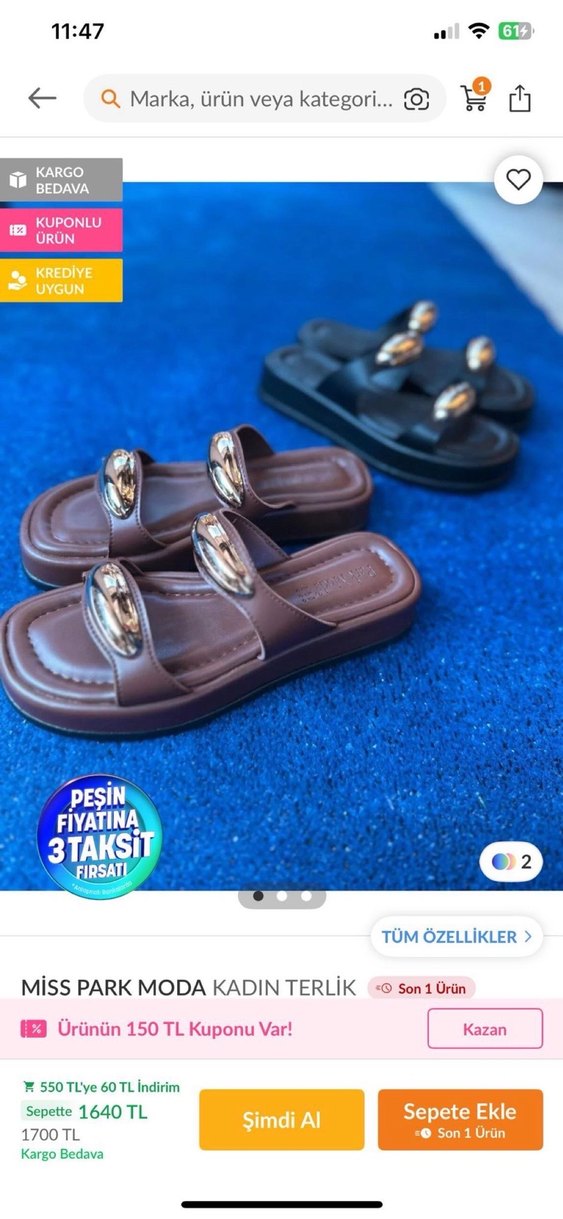 Kahverengi platform tabanlı, lastik malzemeden yapılmış, tokalı tasarıma sahip kadın terlik. Minimalist ve desensiz, günlük şıklık için uygundur. Ayakta yok denecek kadar rahat Mat kahverengi deri, tokalı bantlar ve platform topuklu, minimalist tarzda kadın terlik. Rahatıma düşkünüm ama şık olmayıda seviyorum diyenlerin tercih edeceği şahane bir ürün, aldığım fiyatın çok altında satışa çıkardım, ihtiyacı olan kaçırmasın #terlik #sandalet #topuklusandalet #zara #mango #setrems #mango #modailgi ##elle #zara #desa #yaya #hotiç #mango #bershka #beymen #tanca #kemaltanca #lacoste