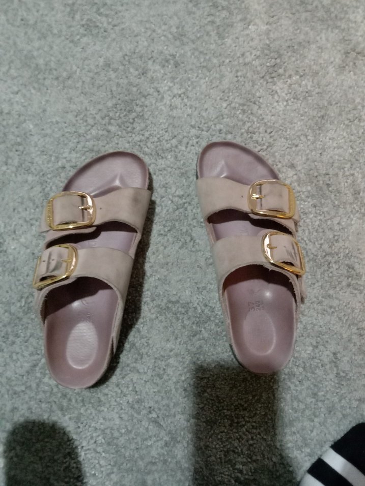 birkenstock kadın terlik az kullanimistir orjinaldir 38 numaradır Bej süet malzemeden, çift tokalı ve dolgu topuklu kadın terliği, konforlu ve normcore tarzıyla günlük kullanım için uygundur.