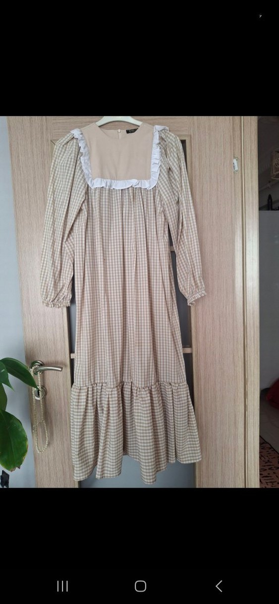 36 beden beline kemer ile ya da kemersiz çok şeker bi model krem rengi.