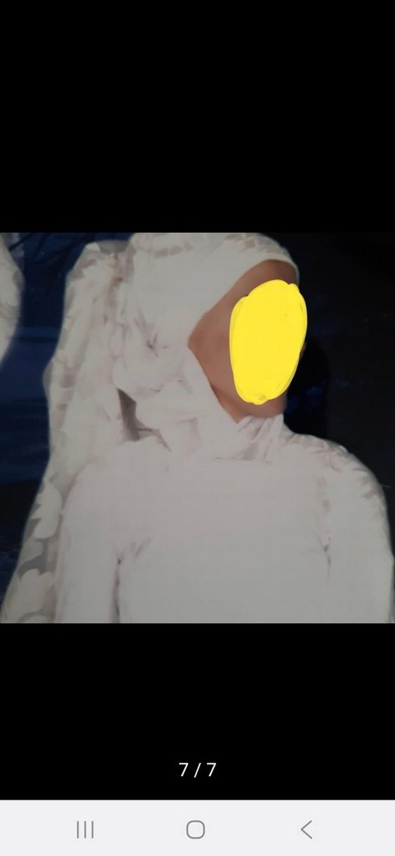 Düğünümde giydim ve kuru temizleme yaptırıp kaldırdım.Bazanın altında biraz kırışmış ama harika bir tarz ve tam tesettür, bütün parçaları duruyor