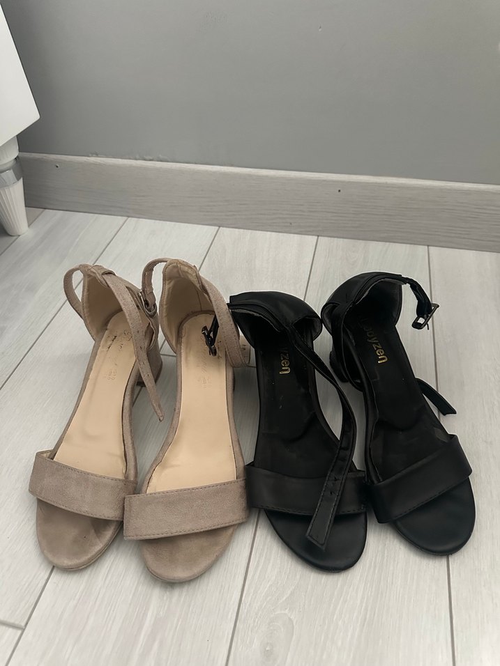Biri süet diğeri deri topuklu ayakkabı İkisi de 37 numara fakat 36 numara ayağa daha çok uygun İki çift ayakkabı 400 tl