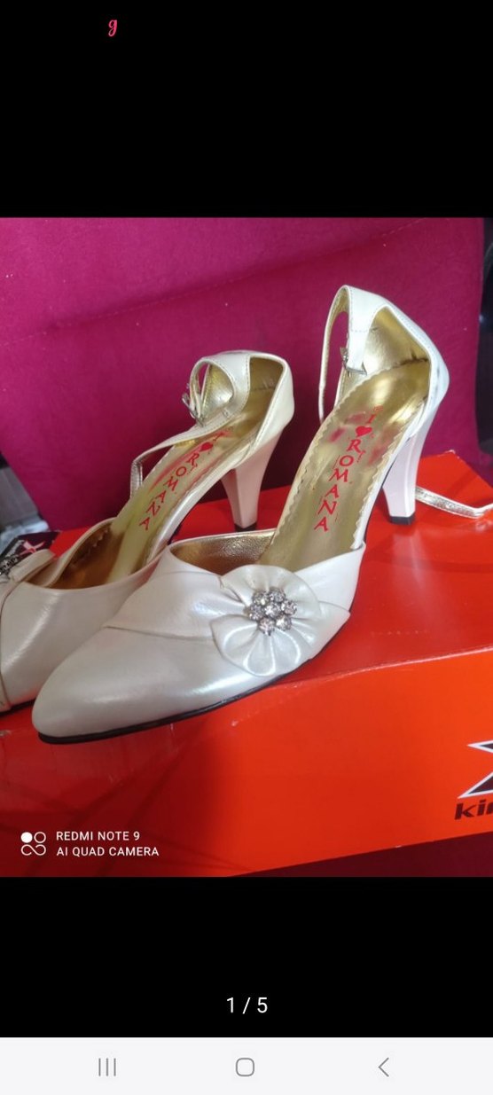 Düğünler için beyaz, çiçek desenli ve payet detaylı topuklu abiye ayakkabı. Klasik ve gösterişli bir tarza sahip.