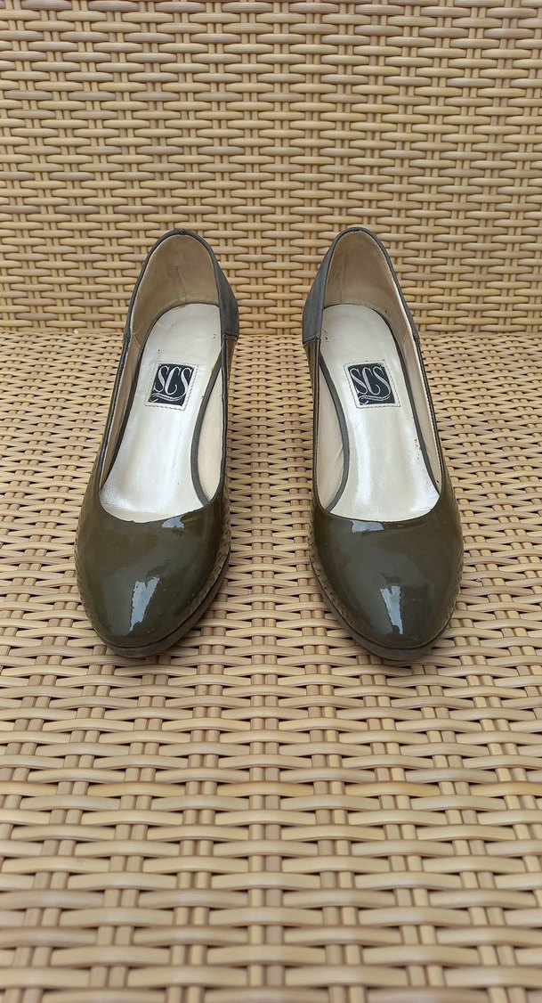 blok topuklu kadın stilettolar. Kauçuk malzemeden üretilmiş, ofis için uygun geleneksel tarzda, zahmetsiz şıklık sunar.