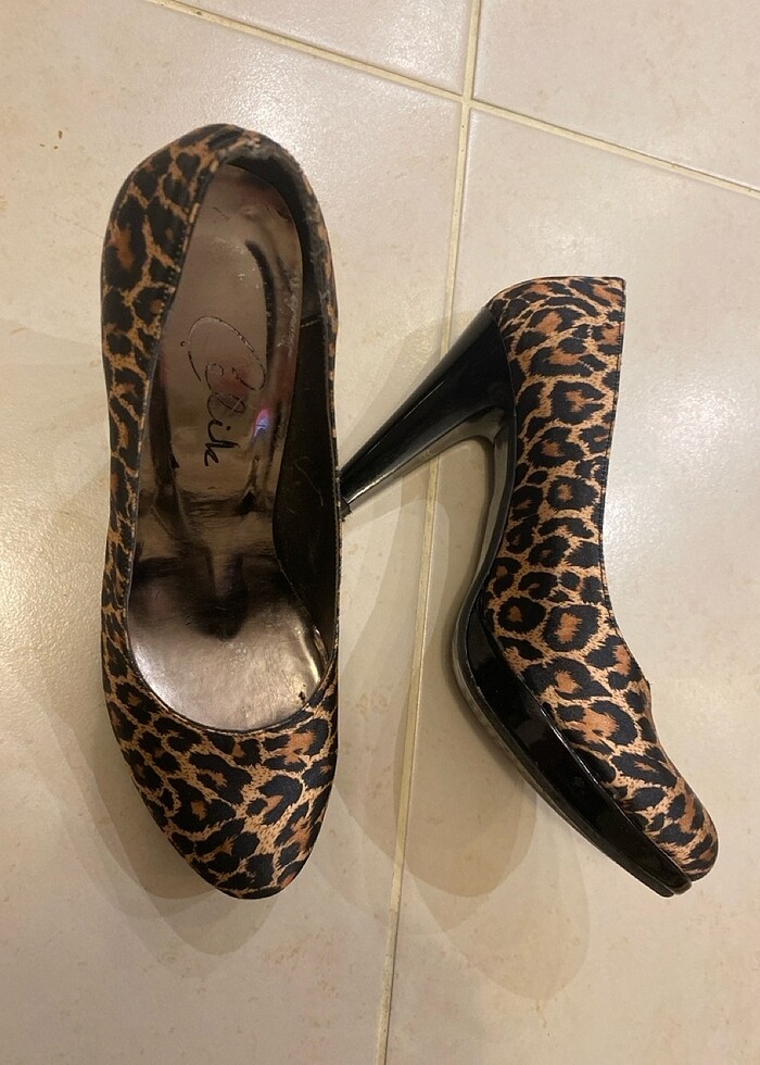 Leopar model, 9 cm topuk, iç ortamda giyildi