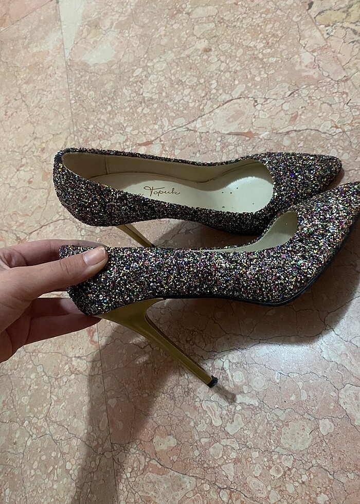 Bir kere kullanıldı ışıltılı topuklu ayakkabı