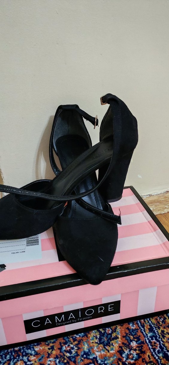 Siyah süet topuklu ayakkabı hasarsızdır