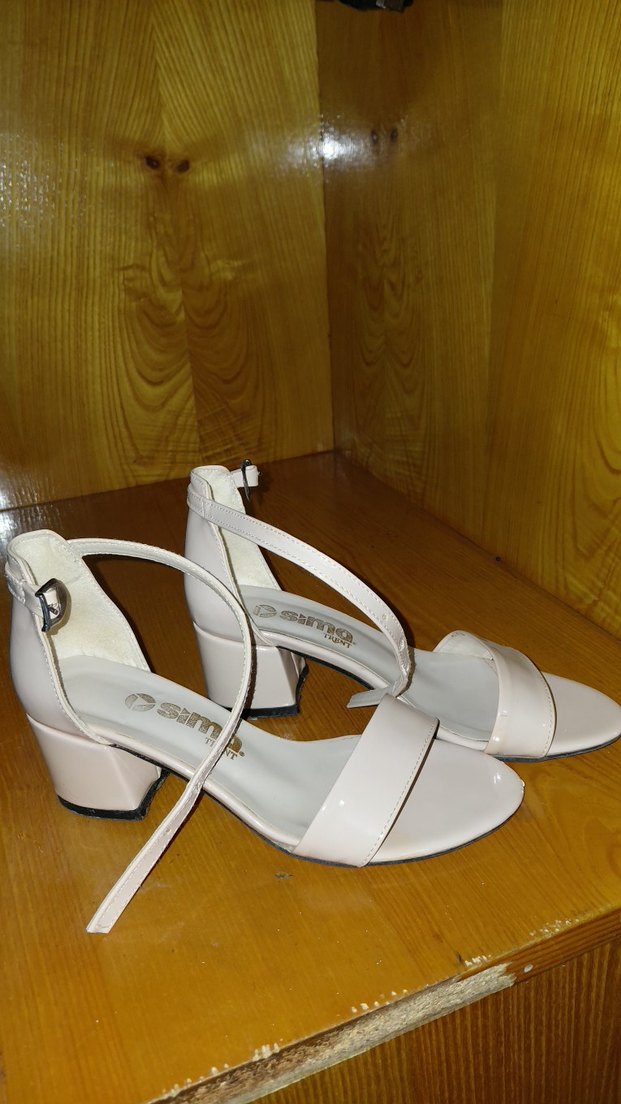 Kadınlar için pudra, tokalı ve blok topuklu, dayanıklı kauçuk malzemeden yapılmış minimalist topuklu ayakkabı. Klasik şıklık için uygun. sadece bir kere giyildi .