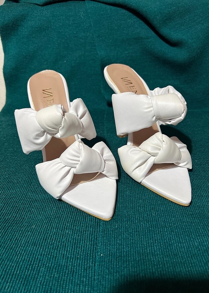 Beyaz hiç giyilmemiş, 36 numara, 35,5 gibi dar kalıp, küçük ayaklılar için uygun,suni deri terlik