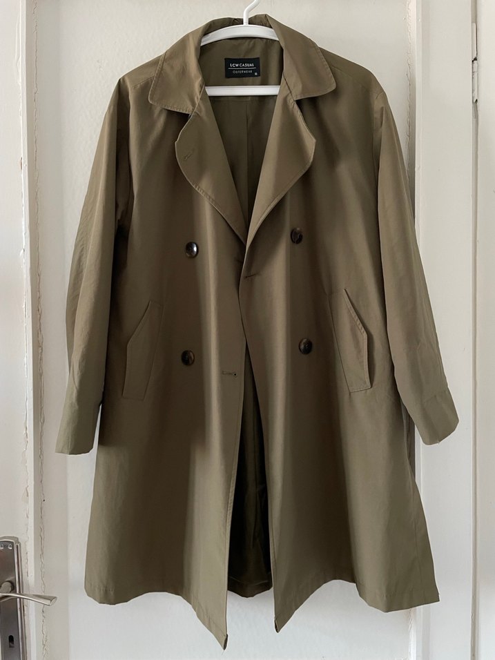Midi boy trençkot, düğmeli ve kesik yaka detaylıdır. Bol kesim ve uzun kolludur, günlük kullanıma uygundur. Herhangi bir deformesi yoktur.