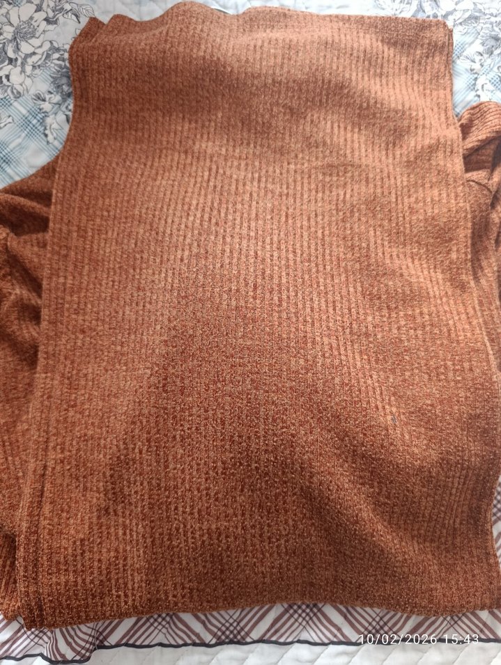 Bu kahverengi, uzun kesim triko kazak, yumuşak sentetik kumaştan örülmüştür. Parlak tonu günlük kullanıma sıcaklık katar ikili takım xl/xxl
