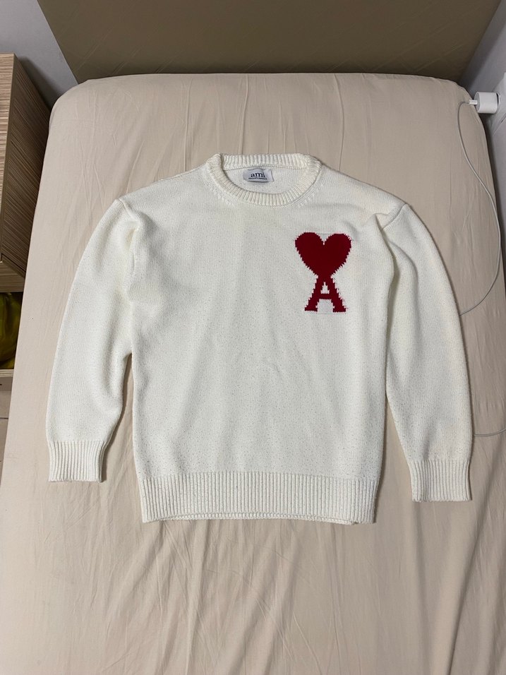 Kadınlar için uzun kollu, yuvarlak yakalı, yumuşak örgüden yapılmış beyaz triko kazak. Salaş kesim ve normal boyda, kırmızı nakışlı kalp ve harf detayı bulunur. Günlük rahat kullanım için uygundur. ❤️