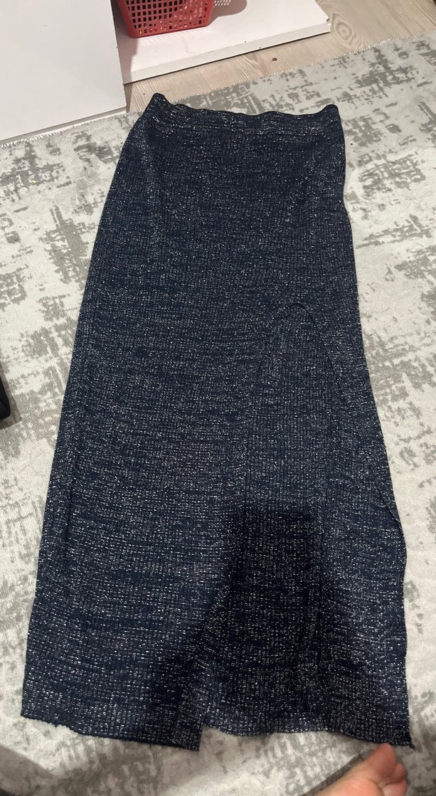 Kadınlar için triko dokulu, sentetik kumaştan yapılmış, dar kesim uzun gri etek. Rahat ve şehir stili için uygun, günlük kullanıma idealdir.
