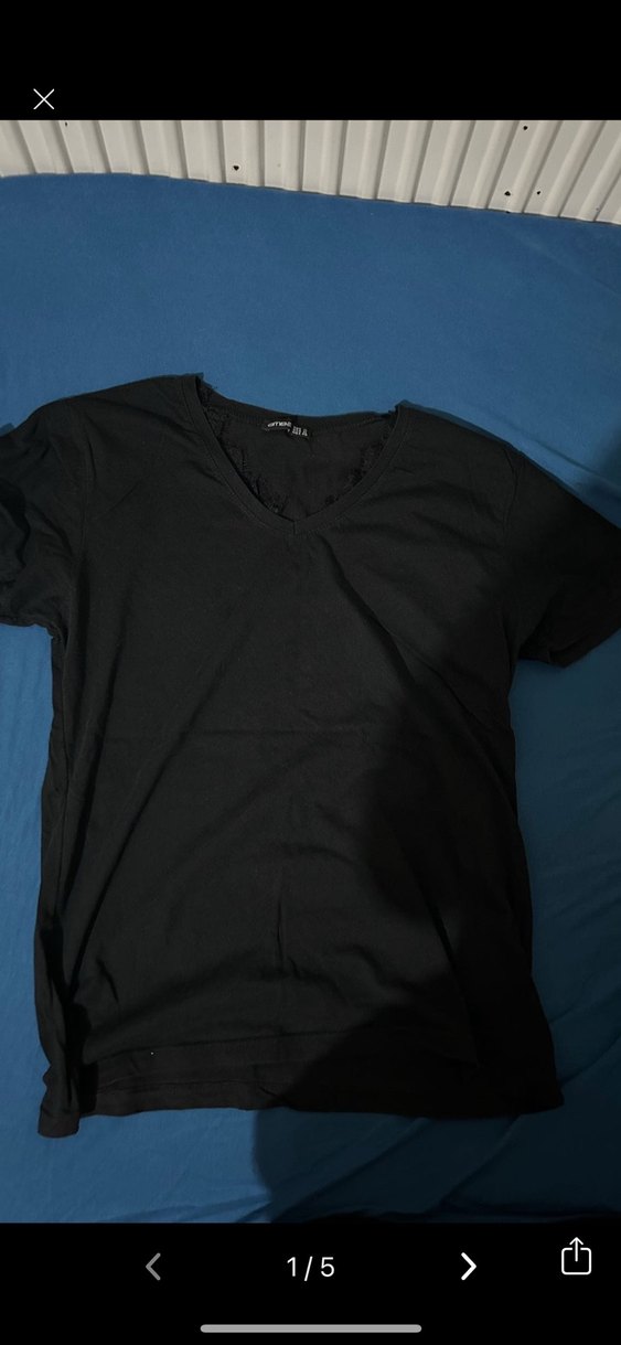 Kadınlar için siyah, V yaka ve rahat kesime sahip, minimalist tarzda, normal boyda tshirt