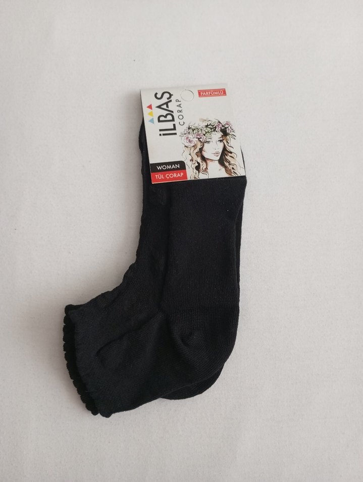 Yumuşak kumaştan üretilmiş tül detaylı soket kadın çorabı.