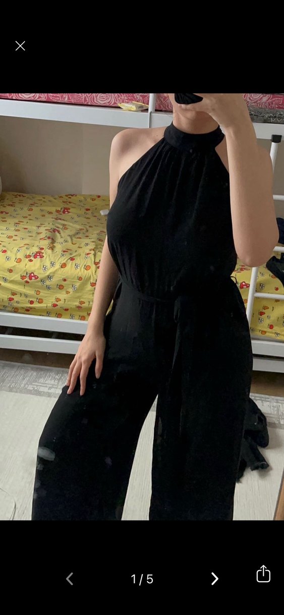 34 beden siyah renk tulum çok şıktır arkada fermuarı bulunmakta kemeri mevcut ister bağlayın ister bağlamayın size kalmıştır defosu yoktur sadece 1-2 kere giyildi