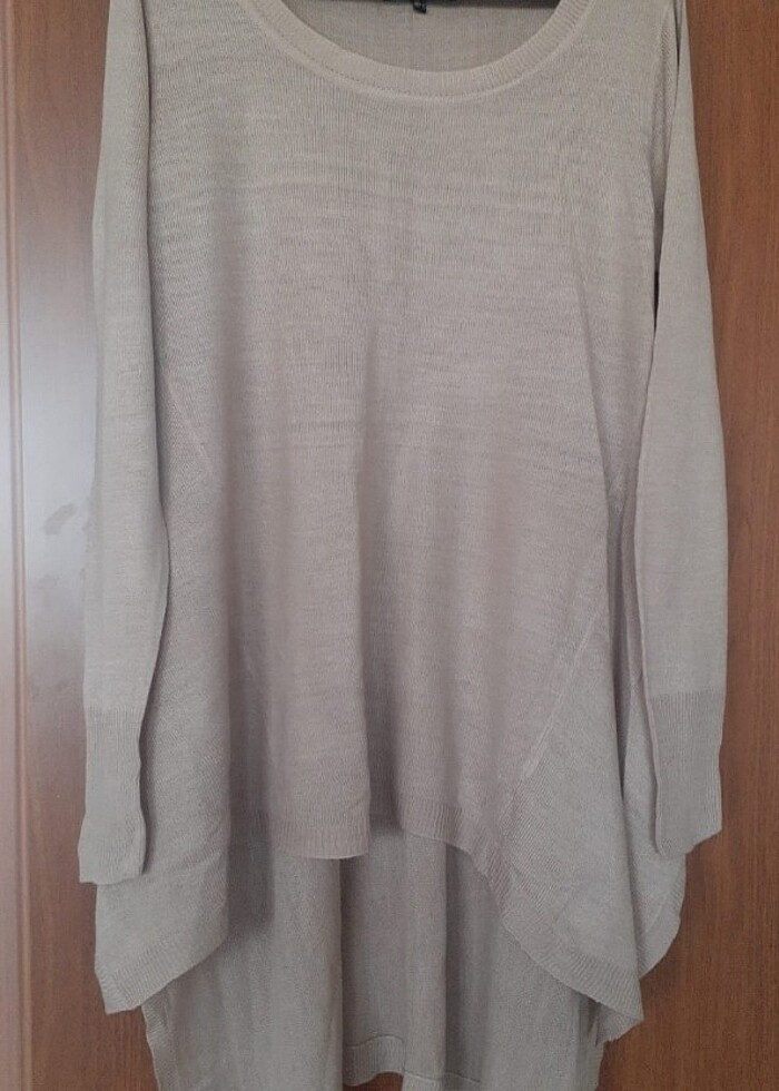 bej rengi önü kısa arkası uzun ön yakadan 60 cm arka yakadan aşağı 90 cm dir alt tarafı salaş