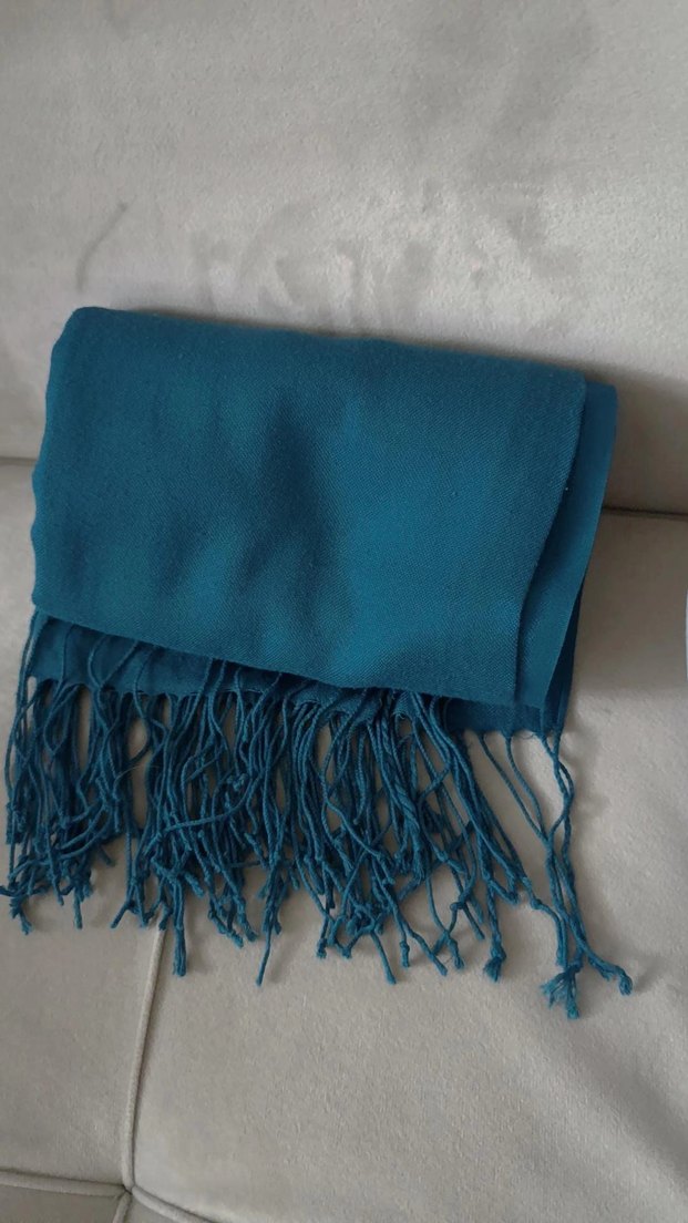 Turkuaz renkte, ipeksi dokulu ve salaş tasarımlı bu şal, püsküllü kenarlarıyla rahat ve parlak bohem stil sunar. Retro hippie görünüme uygundur. hafif bitlenme var ama halledilebilir