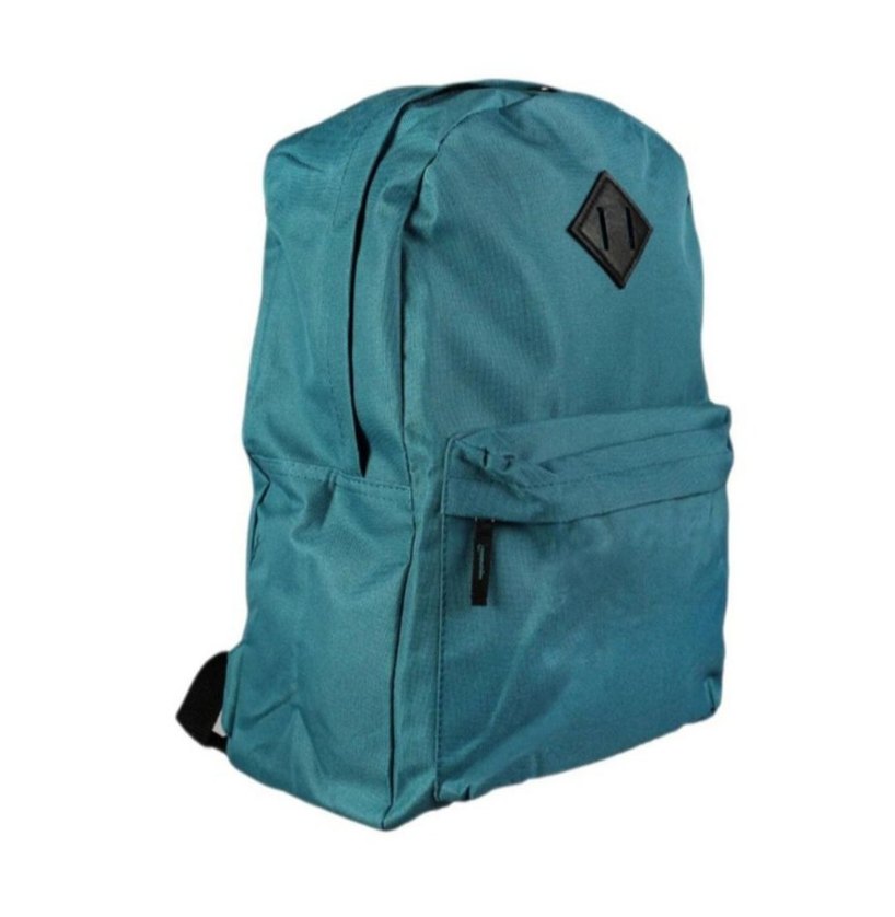 Koyu turkuaz renkte, kemerli, sentetik kumaştan yapılmış kadın sırt çantası, günlük kullanım için minimalist tarzda. Büyük Boy